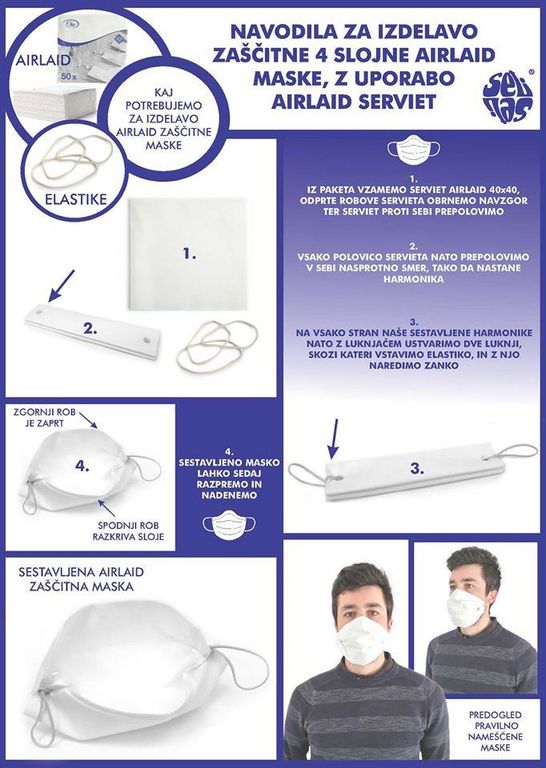 Sami lahko sešijete maske iz blaga za večkratno uporabo, pri tem pa so vam lahko v pomoč navodila Univertitetnega kliničnega centra Ljubljana.