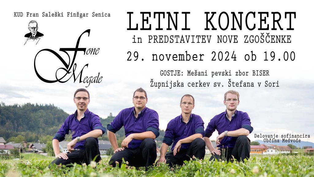 Vokalna skupina Fone Megale vabimo na svoj letni koncert, ki ga bomo tokrat izvedli z gosti MePZ Biser iz Vodic.