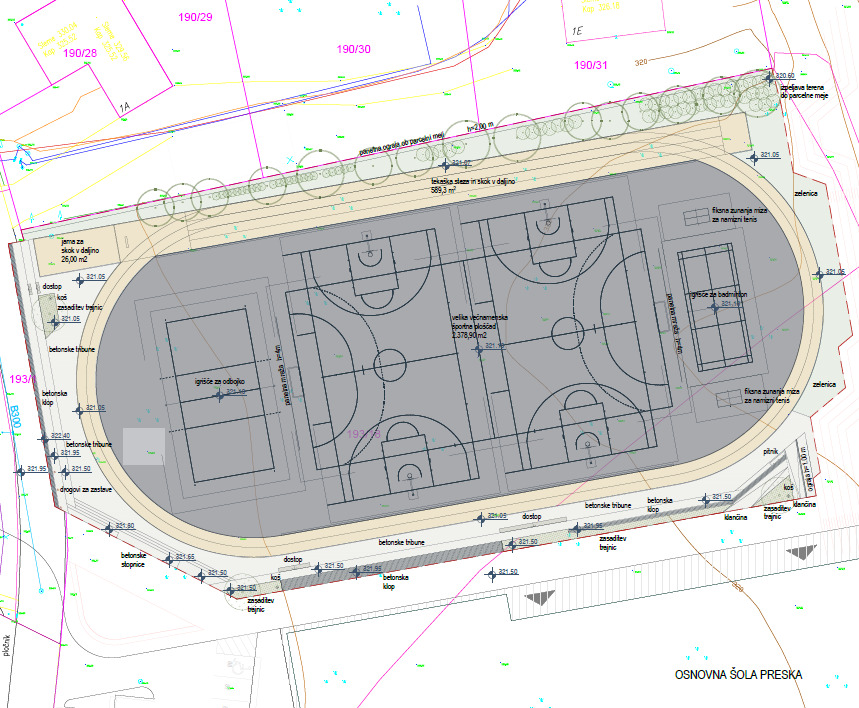 Športno igrišče pred začetkom gradnje šoleNačrtovana dela predstavljajo del zunanje ureditve ob novo načrtovani OŠ Preska. Gradnja stavbe, parkirnih in drugih površin še ni predmet trenutne investicije.