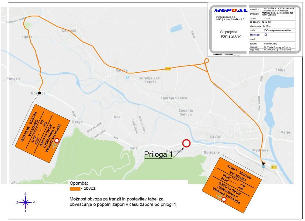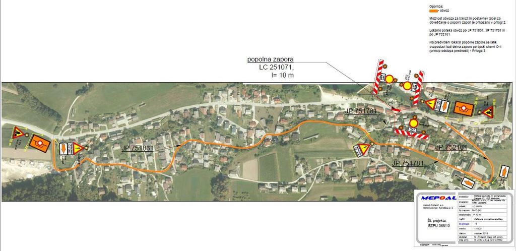 ter popolna zapora ceste v soboto in nedeljo, 26. 10. 2019 in 27. 10. 2019. Promet bo v času popolne zapore potekal po obvozu.