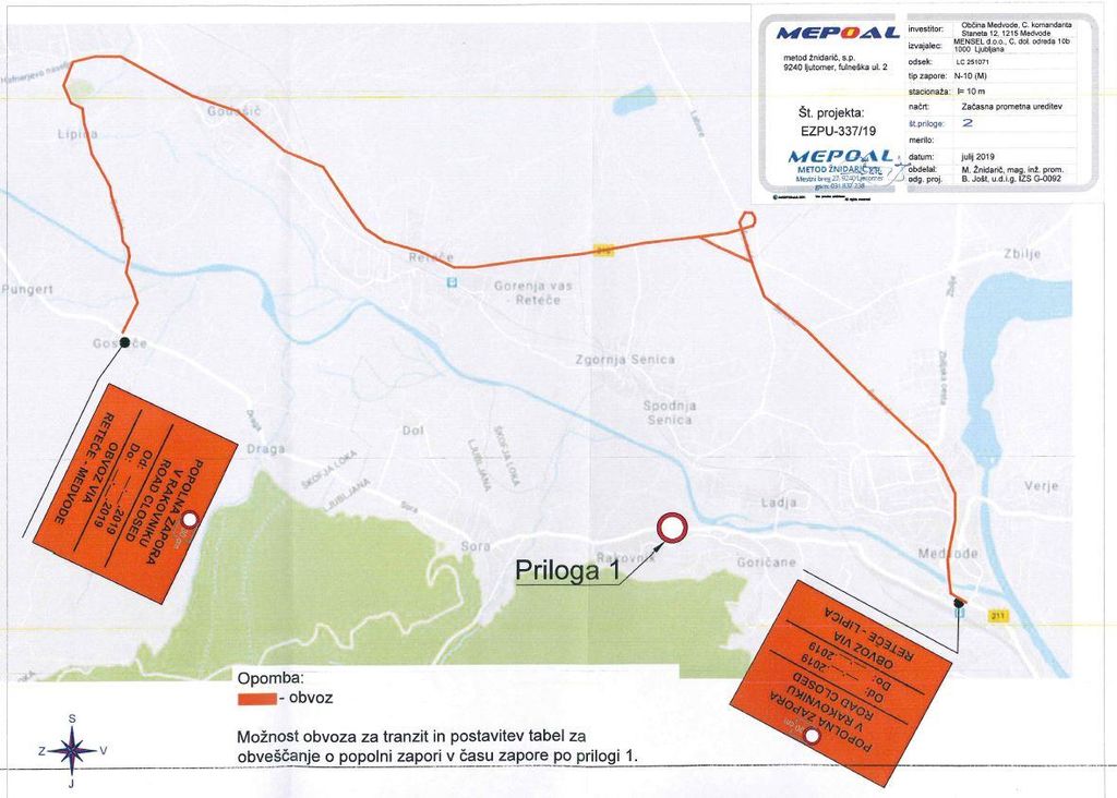 Promet bo v času popolne zapore potekal do zapore z označenimi obvozi (označeno na pripetem zemljevidu).