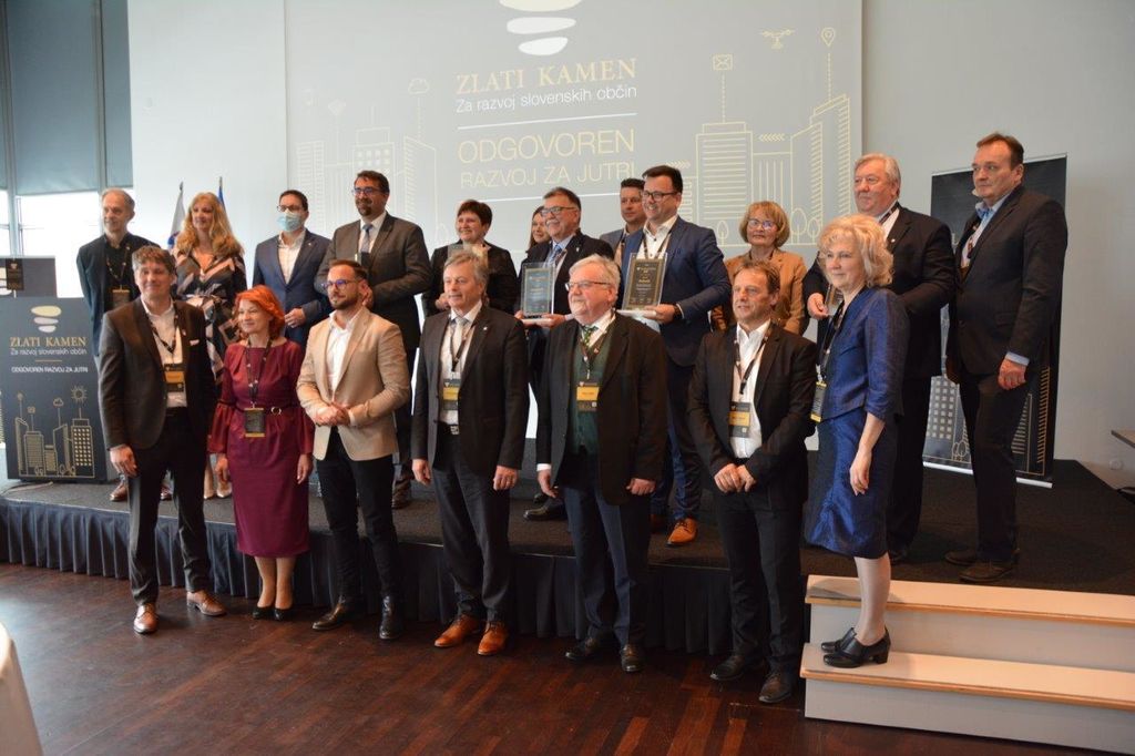 Organizatorja izbora Zlati kamen sta podjetji Planet GV in SBR. Poleg splošnega razvoja so posebej skrbno spremljali trajnostno usmerjenost občine in vključevanje prebivalcev v odločanje. Regijske zmagovalke in prejemnice priznanj za razvojno najbolj prodorne občine so Občina Ajdovščina v Zahodni Sloveniji, Občina Medvode v Osrednji in Jugovzhodni Sloveniji z Notranjsko, Občina Solčava v regiji Od Koroške do Posavja ter Občina Dobrovnik v Vzhodni Sloveniji. Finalistke v izboru za najbolj prodorne občine v letu 2022 so bile poleg omenjenih še Bled, Bohinj, Loški Potok, Vodice, Dravograd, Laško, Lovrenc na Pohorju in Sveta Trojica v Slovenskih goricah. Nagrado zlati kamen za razvojno najbolj prodorno občino je letos prejela Občina Ajdovščina, v kategoriji majhnih občin pa Solčava. NIJZ je na konferenci podelil tudi priznanje Občina zdravja, ki ga je dobila Občina Logatec.