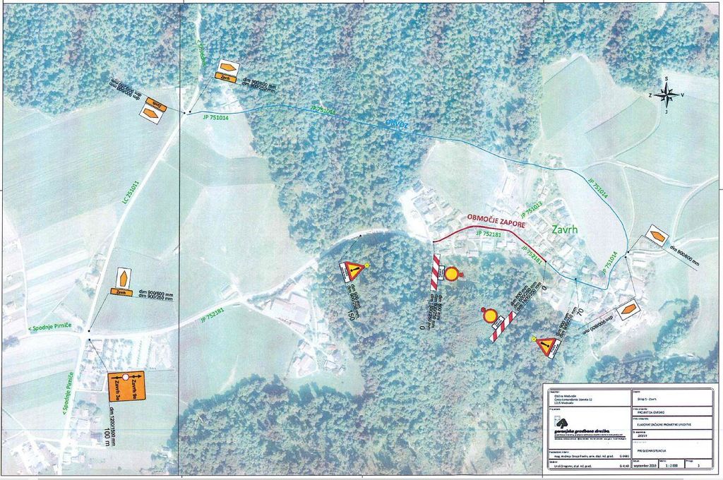 Vse udeležence v prometu obveščamo, da bo zaradi obnove vodovoda v Zavrhu omenjena cesta na odseku ceste Zavrh 3e – Zavrh 9e v času gradnje vodovoda zaprta za ves promet. Dela se bodo začela predvidoma v tednu po 9. 9. 2019 in bodo zaključena do začetka novembra. V času del bo promet preusmerjen na vzporedne ceste, kje bo označen obvoz.