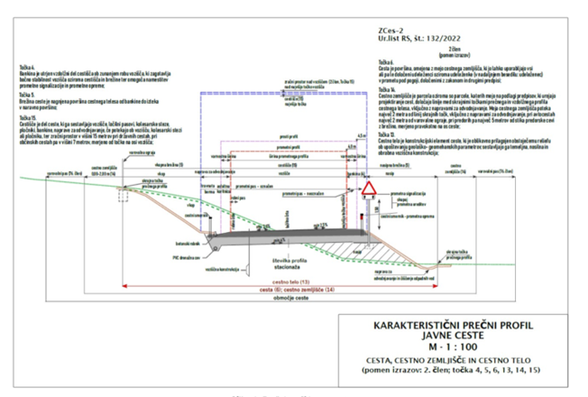Skica 2 prikazuje karakteristični prečni profil javne ceste