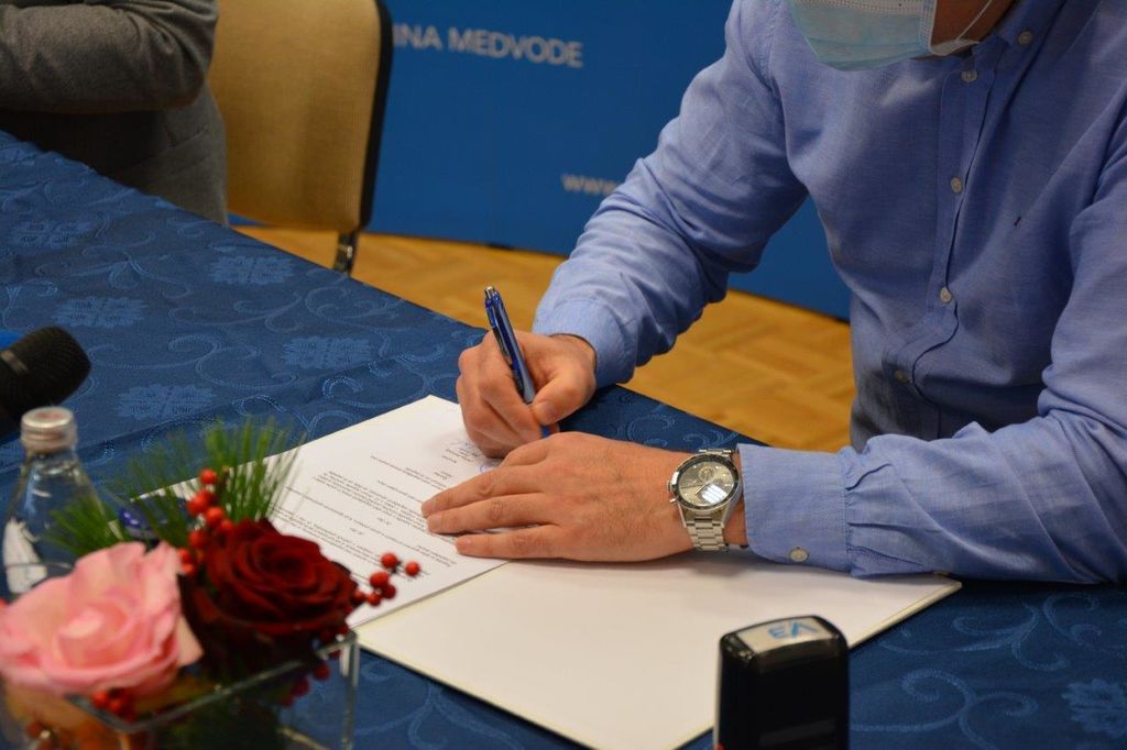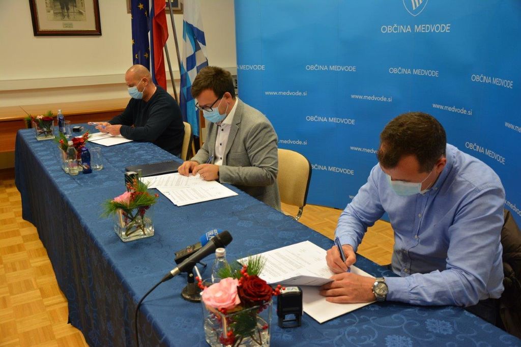 Župan Nejc Smole in Roman Štrukelj, prokurist podjetja Lavaco d.o.o., ter Miroslav Vidaković, direktor podjetja V3 d.o.o., so včeraj podpisali pogodbe za izgradnjo kolesarske poti in brvi v skupni vrednosti dobra 2 milijona evrov. Še v mesecu decembru bo izvedena uvedba v delo, začetek del pa se, odvisno od vremenskih razmer, pričakuje v mesecu januarju 2022. Rok za zaključek gradnje je do konca leta 2022.