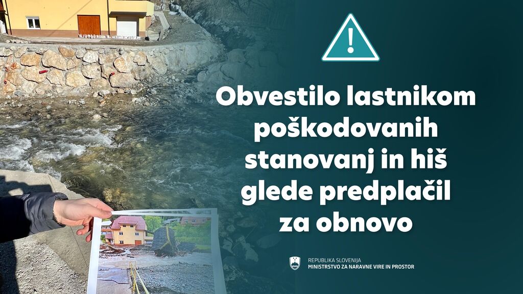 »V pripravi je izplačilo zadnje tranše predplačil lastnikom poškodovanih stanovanj in hiš. Pri tem poudarjamo, da ne gre za izplačilo v smislu odškodnine, kot se v javnosti včasih napačno razume, temveč za nakazilo iz državnega proračuna pri vzpostavitvi bivalnih pogojev, ob upoštevanju zakonsko določenih pogojev in meril. Prejemnikom nakazil svetujemo, naj skrbno hranijo račune o porabi sredstev.