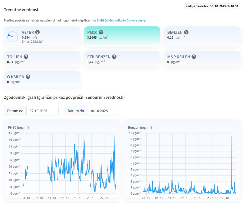Meritve izvaja Elektroinštitut Milan Vidmar, ki skrbi tudi za njihovo kakovost in zanesljivost. Namen občinske merilne postaje je jasen – zagotoviti transparentne, ažurne in strokovno preverjene podatke o kakovosti zraka v Medvodah. Na podlagi teh podatkov se pripravljajo tudi mesečna poročila, ki občanom omogočajo vpogled v gibanje in trende onesnaženosti.