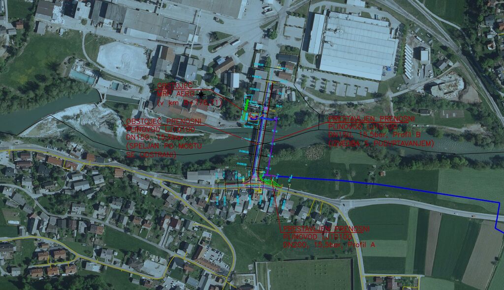 S predmetno investicijo je predvidena izvedba nove trase plinovoda, ki bo potekala vzporedno z obstoječim oziroma novim mostom (v odmiku 15 m na dolvodni – vzhodni strani) pod strugo Sore (mikrotuneliranje). Po izvedenem tlačnem preizkusu in pridobitvi uporabnega dovoljenja za nov odsek prenosnega plinovoda, je potrebno nov odsek plinovoda še prevezati na obstoječi plinovod.