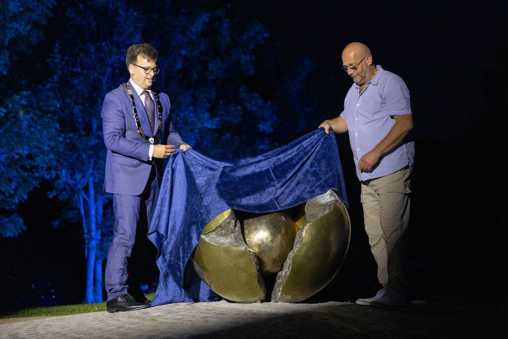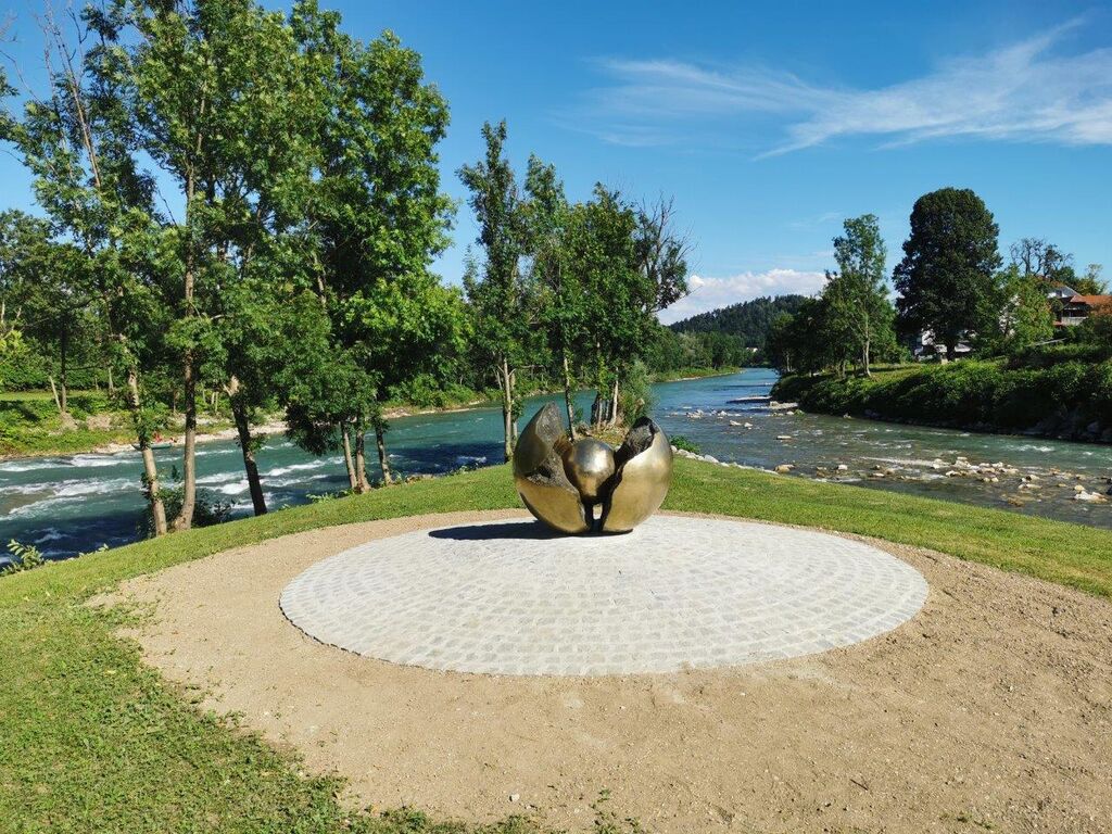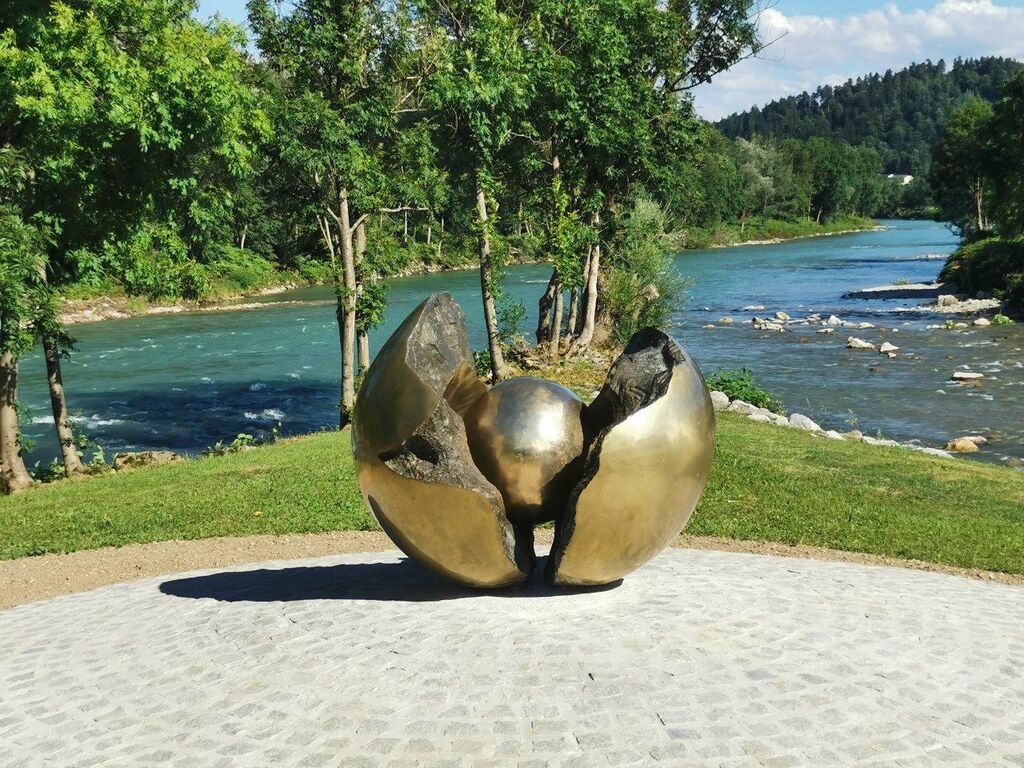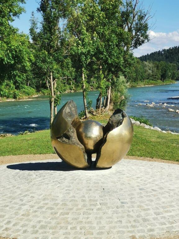 V petek, 5. julija 2024, je ob 30. obletnici občine Medvode, na sotočju Save in Sore potekalo slovesno odkritje Krogle z jedrom, ki je delo Medvoščana in mednarodno priznanega kiparja Franceta Rotarja.