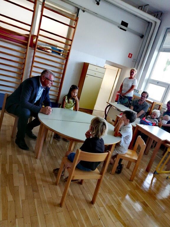 Učence prvih razredov in njihove starše sta letos obiskala in nagovorila župan Nejc Smole in podžupan Leon Merjasec. V svojih nagovorih sta se spomnila svojih šolskih dni, starše prosila, da šoli dopustijo vzgojo njihovih otrok, pedagoškim delavcem pa sta zaželela uspešen začetek novega šolskega leta. Otroke sta prosila, naj bodo glavne vrednote v času šolanja: sodelovanje, spoštovanje in medsebojna pomoč. Vsi prvošolci so prejeli tudi priložnostno darilce Občine Medvode, čepico s ščitkom.