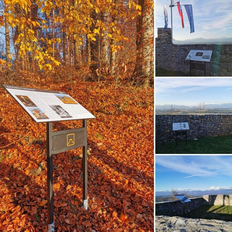 Projekt sta predlagala Lucija Fabjančič in Matej Ulčar. »Vsaka tabla se osredotoči na eno temo. Na prvi sva želela prostorsko in splošno zgodovinsko orisati, kaj ta prostor v zgodovini pomeni, zakaj grad tukaj stoji, njegove prve omembe. Na drugi tabli je predstavljen razvoj gradu v smislu stavbne zgodovine. Predstavili smo tri faze: grad iz 12. in 13. stoletja, ko je stal samo stolp, iz 14. in 15. stoletja, ko sta dodana palacij in notranje obzidje, in zadnjo fazo iz 16. in 17. stoletja še z zunanjim obzidjem. Dodana je QR koda za dostop do kratkega filma, ki prikazuje, kako se je grad razvijal od 12. do 17. stoletja. Na tretji tabli je predstavljenih nekaj zgodbic iz življenja na gradu in predmeti, ki so jih tukaj našli. Predstavljena je tudi zgodbica o dnevu iz življenja na gradu konec 13. stoletja, ki jo je mogoče lahko tudi poslušati. V ta namen je na tabli dodana QR koda.« je povedala Lucija Fabjančič.