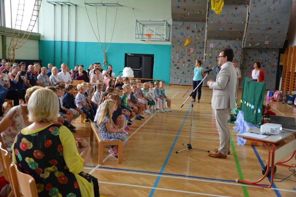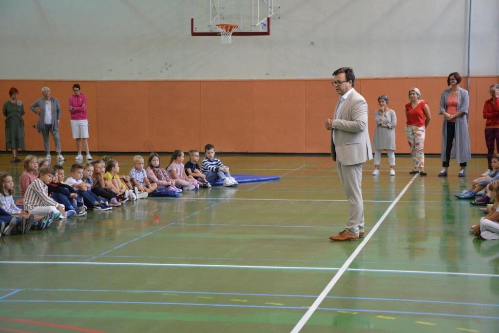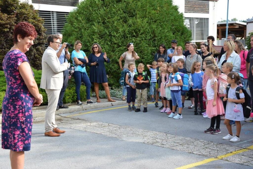 Župan je ob začetku šolanja nagovoril otroke, njihove starše in učitelje. Najmlajše šolarje so prvi dan v šolo pospremili tudi starši, učitelji in učenci višjih razredov pa so poskrbeli, da jim bo dogodek ostal v lepem spominu. Otroci so prejeli tudi priložnostno darilo Občine Medvode in sicer plastenko za vodo.