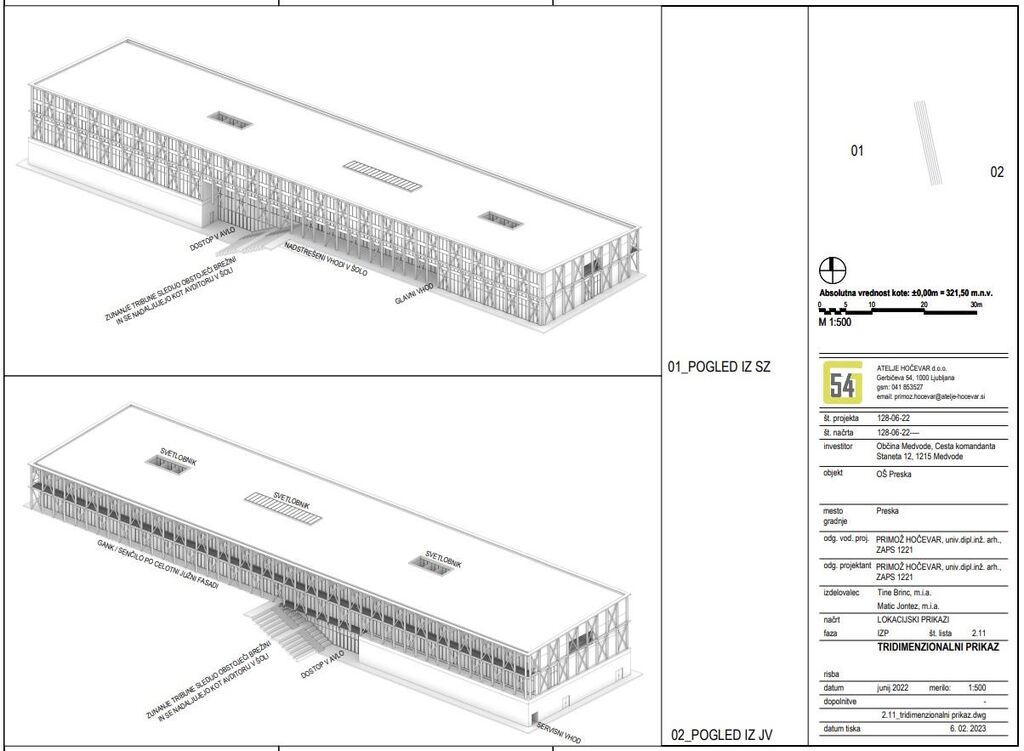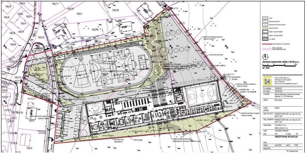 V času projektiranja vključili različne deležnikeLani maja smo z izbranim izvajalcem, podjetjem Atelje Hočevar d.o.o. podpisali dobrega pol milijona evrov vredno pogodbo projektiranja in projektantskega nadzora za novo šolo v Preski. V času projektiranja je bila ves čas vključena Osnovna šola Preska, projekt smo večkrat predstavili zaposlenim, staršem, krajevni skupnosti in na skupnem sestanku tudi najbližjim sosedom. V vseh fazah smo zelo dobro sodelovali z izbranim odgovornim projektantom, direktorjem podjetja, doc. Primožem Hočevarjem, univ. dipl. inž. arh.. Gre za zahteven projekt pri katerem je potrebno upoštevanje visokih standardov gradnje. V času projektiranja so bili pridobljeni vsi projektni pogoji in mnenja. Pripombe sosedov se nanašajo predvsem na zagotovitev nove cestne povezave, saj je obstoječa Bizantova cesta ozka in neprimerna za glavno dostopno cesto do nove šole. Občina Medvode se zato zavzema za čimhitrejšo izgradnjo nove dostopne ceste do nove šole, ki se bo na Škofjeloško cesto priključila v bližini lovskega doma. Trenutno tečejo postopki spremembe namenske rabe zemljišč v okviru spremembe OPN SD1.