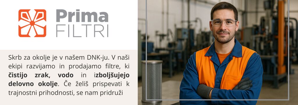 Si pripravljen ustvarjati prihodnost filtracije z nami? Pošlji svojo prijavo na: marko@prima-filtri.si - zadeva: "Prijava na delovno mesto PROIZVODNI DELAVEC" najkasneje do 1. 10. 2025.
