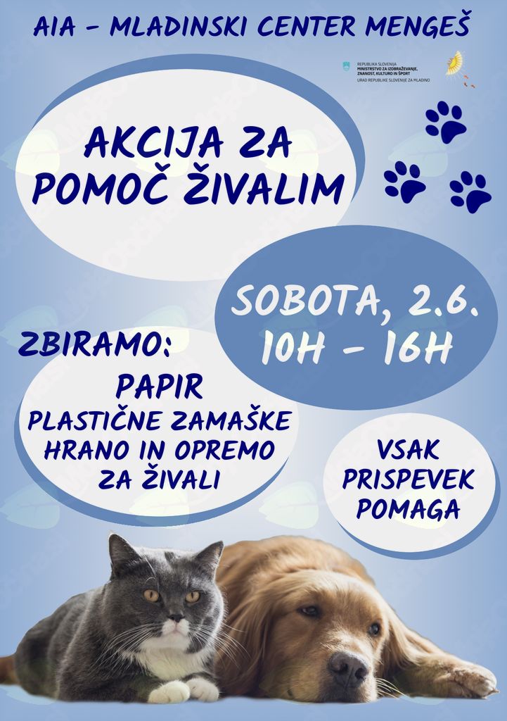 Akcija bo potekala 2.6. med 10. in 16. uro pred mladinskim centrom. Vso zbrano pomoč bomo nato odpeljali v Ljubljano in podarili društvu za zaščito živali.