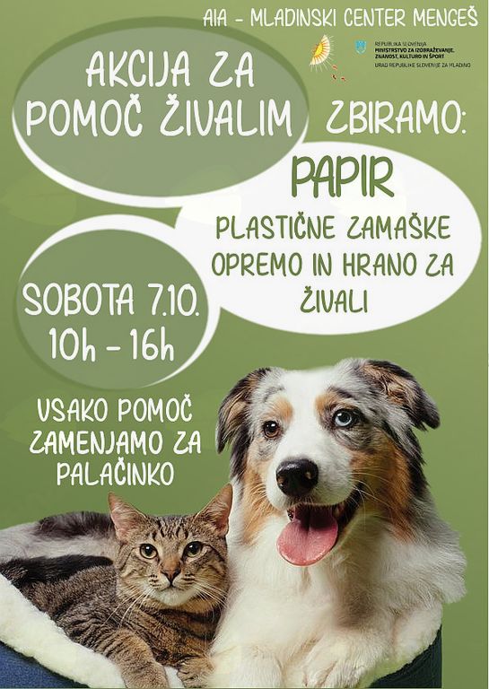 V oktobru ponovno organiziramo akcijo za pomoč živalim. Tudi tokrat gre vsa pomoč društvu za zaščito Ljubljana. Zbrana sredstva bodo namenjena Zavetišču Horjul in Zavodu SVSP.