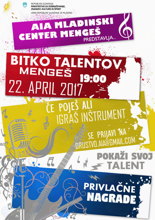 Nastopi bodo potekali pod naslovom "Bitka talentov Mengeš", vsak tekmovalec pa se bo lahko predstavil z eno ali največ dvema skladbama po lastni izbiri. Večer bo potekal v sproščenem vzdušju, namen pa je predstavitev talentov in pridobivanje izkušenj na odru. Vsak sodelujoči bo nagrajen z diplomo za sodelovanje, prijavi pa se lahko kdor želi, ne glede na zvrst glasbe, ki jo izvaja. Podeljene bodo tudi nagrade s strani strokovne komisije. Z nastopi bomo pričeli ob 19.00 uri, prej pa bo možna tudi tonska vaja.