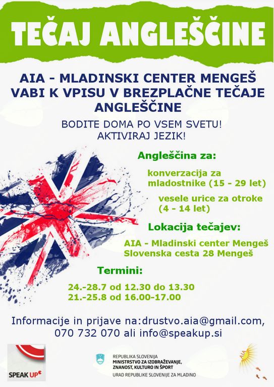 AIA - MLADINSKI CENTER MENGEŠ VABI K VPISU V BREZPLAČNE TEČAJE ANGLEŠČINE