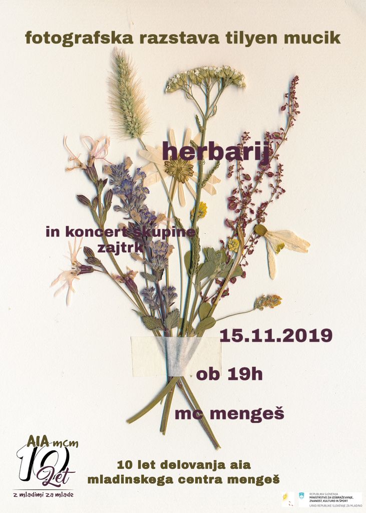 Z otvoritvijo razstave Herbarij se pričenja tudi sklop prireditev, organiziranih v okviru desete obletnice društva AIA - Mladinskega centra Mengeš. Do konca leta se bo ob jubileju zvrstilo število atraktivni dogodkov, mikavnih koncertov in aktualnih predavanj.