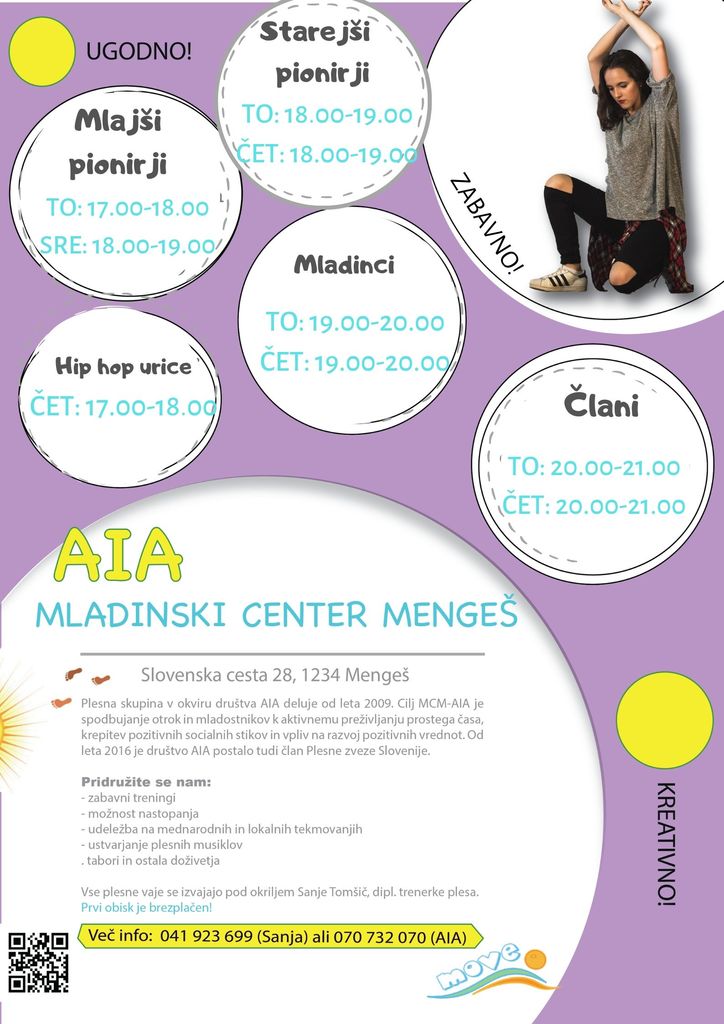 Plesna skupina v okviru AIA deluje od leta 2019. Cilj MCM-AIA je spodbujanje otrok in mladostnikov k aktivnem preživljanju prostega časa, krepitev pozitivnih socialnih stikov in vpliv na razvoj pozitivnih vrednot. Od leta 2016 je društvo AIA postalo tudi član plesne zveze Slovenije.