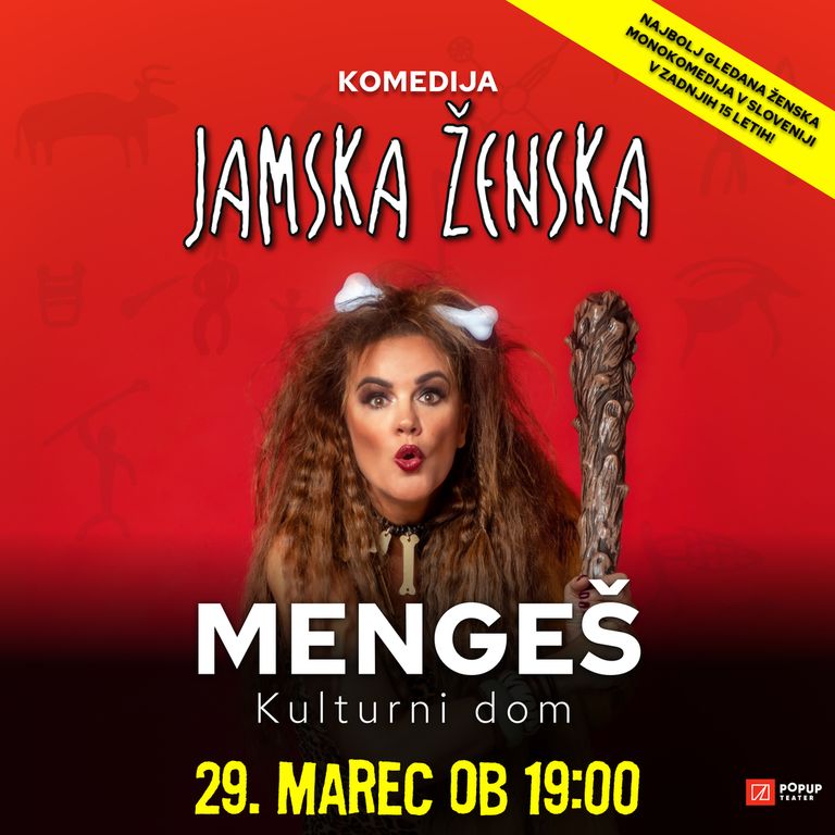 Po izjemnem uspehu predstave Jamski človek zdaj na slovenskih odrih navdušuje še komedija Jamska ženska, avtorice Emme Peirson. V glavni vlogi blesti Rebeka Dremelj, ki s svojo predstavo osvaja občinstvo. Pod režijsko taktirko Ranka Babića, ki ga poznamo po hit komedijah Moška copata in Kriza srednjih let, predstava še naprej razveseljuje gledalce po vsej Sloveniji.