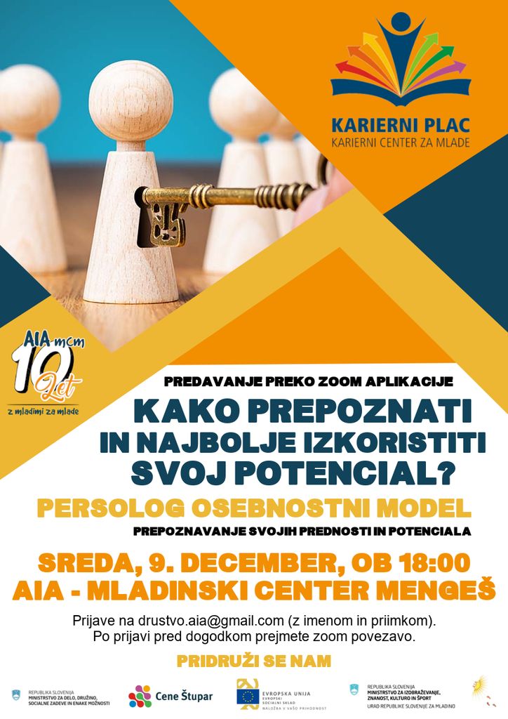 Persolog osebnostni model* - prepoznavanje svojih prednosti in potencialaPredava: Andreja Glavač, Persolog trenerka, Karierni center za mlade, Cene Štupar - CILJ