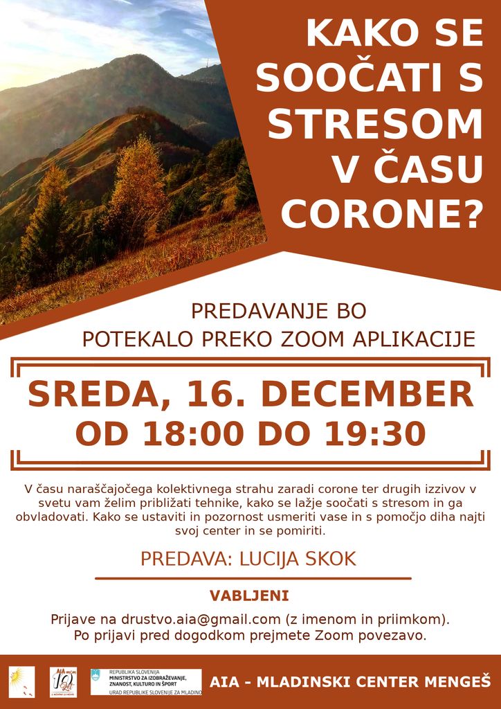 Predavanje bo izkustveno naravnano in skupaj bomo naredili tudi določene tehnike za obvladovanja stresa.