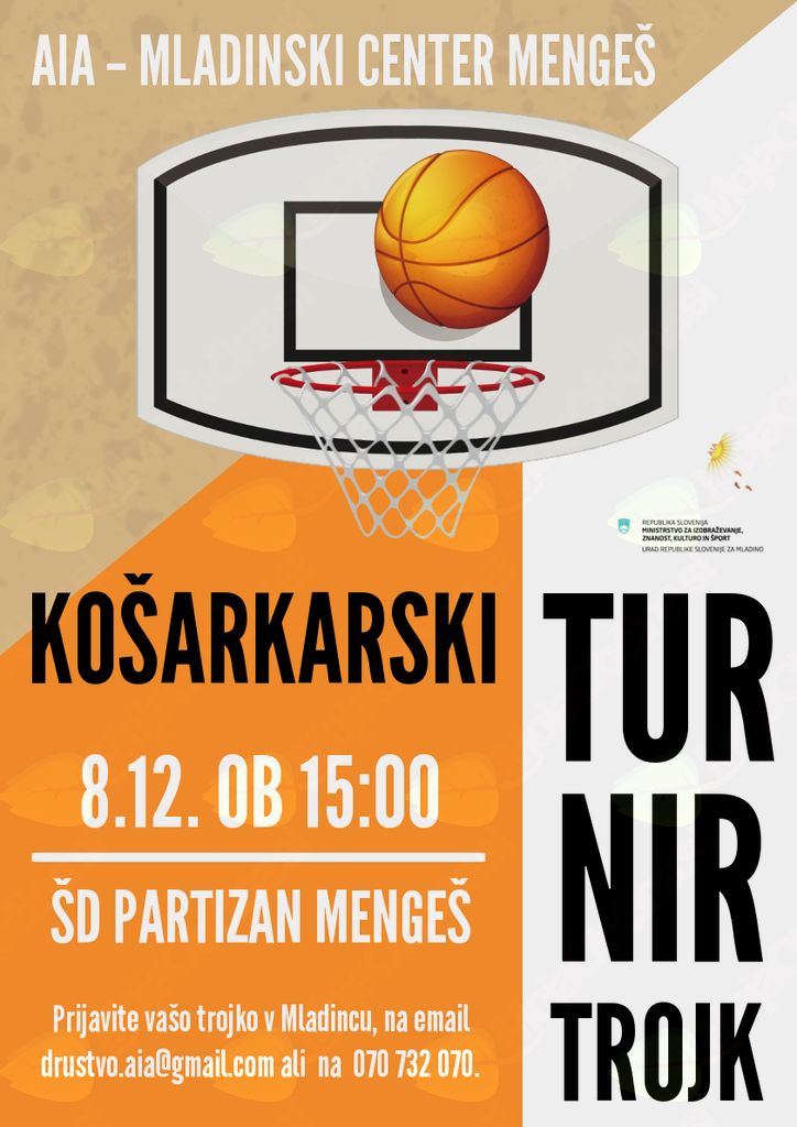 AIA - Mladinski center Mengeš vas vabi na košarkarski turnir trojk.