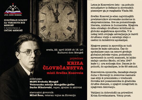 Organizator: ZDRUŽENJE BORCEV ZA VREDNOTE NARODNOOSVOBODILNEGA BOJA SLOVENIJE OBČINE MENGEŠ