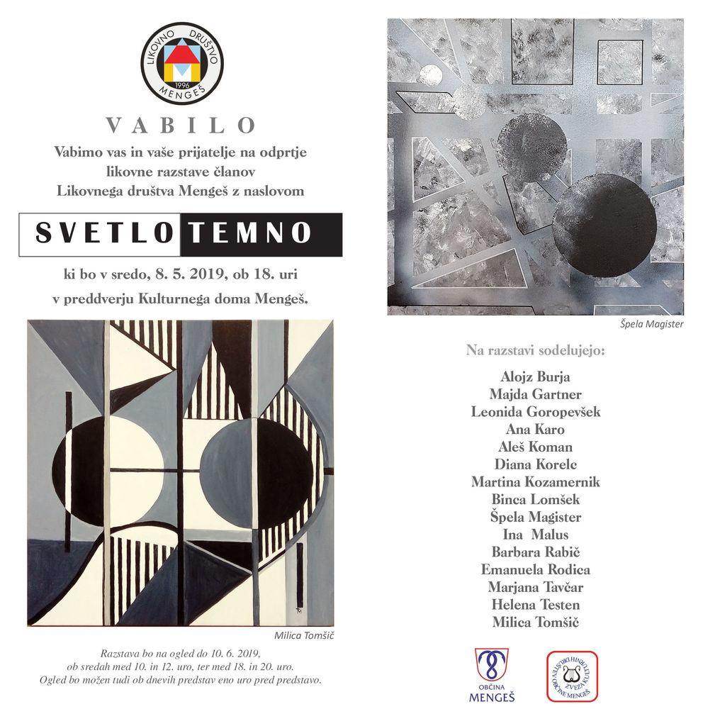 Likovna razstava članov Likovnega društva Mengeš z naslovom SVETLO TEMNO