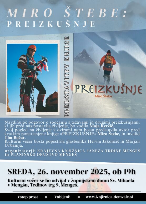 Organizatorja: Planinsko društvo Mengeš in Krajevna knjižnica Janeza Trdine Mengeš