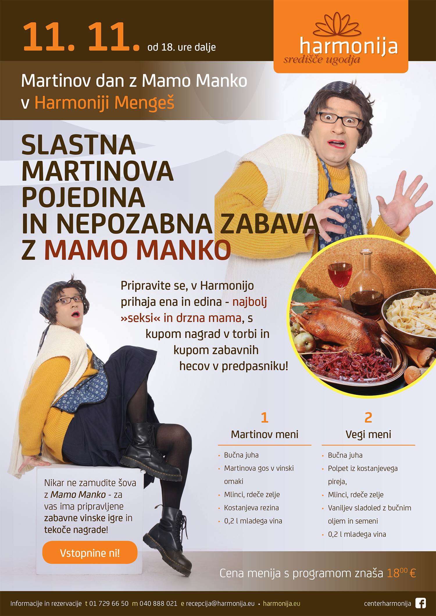 Rezervacije sprejemamo na 040 888 021 in recepcija@harmonija.eu.