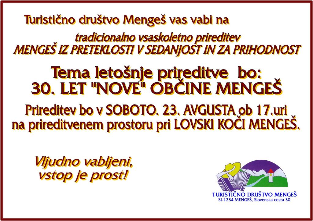 Organizator: TURISTIČNO DRUŠTVO MENGEŠ