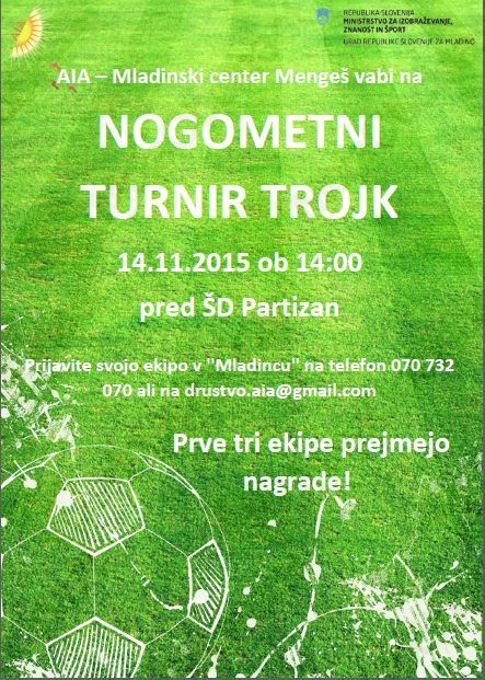 PRIJAVA: Na mail drustvo.aia@gmail.com, na t: 070-732-070 ali osebno v Mladincu v Mengšu. Sporoči ime ekipe, imena in starost igralcev in telefonsko številko enega od igralcev.