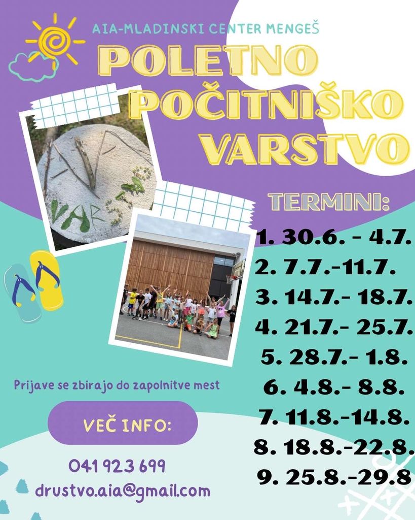 Poletno počitniško varstvo poteka pod okriljem društva AIA, izvaja pa ga Moveo s.p.