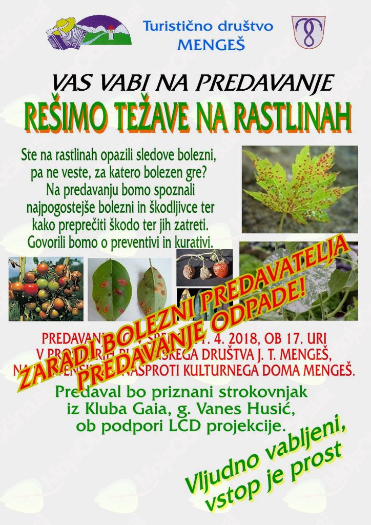 Predavanje REŠIMO TEŽAVE NA RASTLINAH - ZARADI BOLEZNI PREDAVATELJA ODPADE