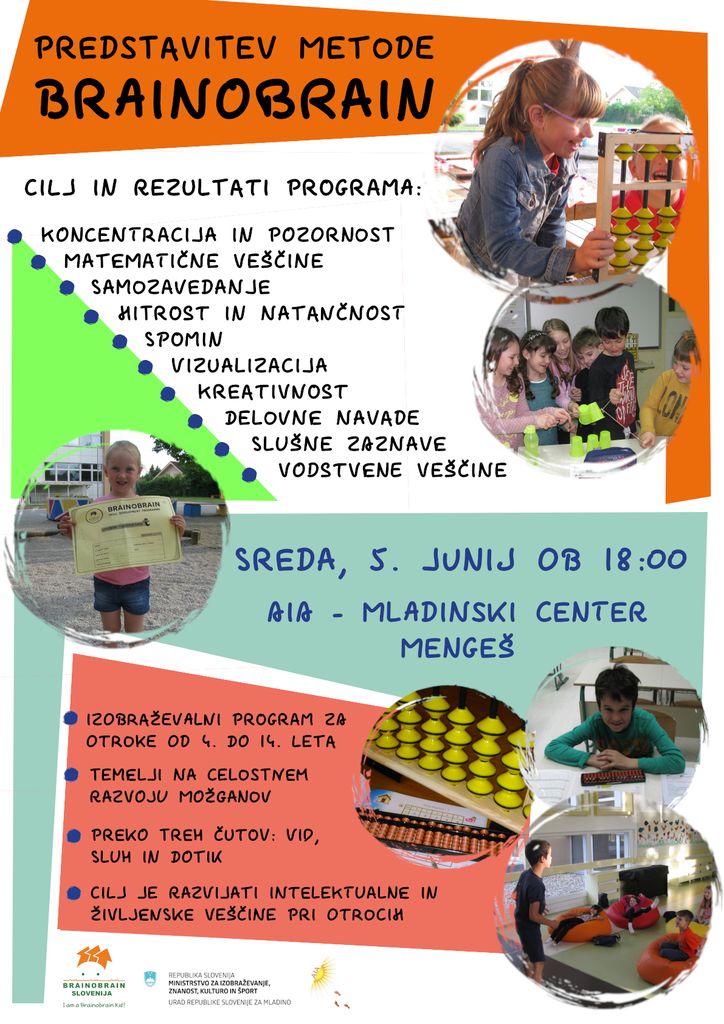 Izobraževalni program Brainobrain je namenjen otrokom od 4. do 14. leta starosti. Temelji na celostnem razvoju možganov s pomočjo mentalne aritmetike ob uporabi abakusa ter razvoju osebnosti s pomočjo tehnik NLP (nevrolingvistično programiranje). Program je osnovan na metodi VAK, kjer otroci sprejemajo informacije hkrati skozi tri kanale: vizualni (vid), avditivni (sluh) in kinestetični (dotik). Dokazano je, da se najhitrejše in najučinkovitejše učenje ali pomnjenje odvija, ko otrok informacijo istočasno prejema preko dveh ali več čutil (vid, sluh, dotik ...). S pomočjo abaka se ustvarja povezava med levo in desno stranjo možganov ter doseže njihova celostna aktivnost.
