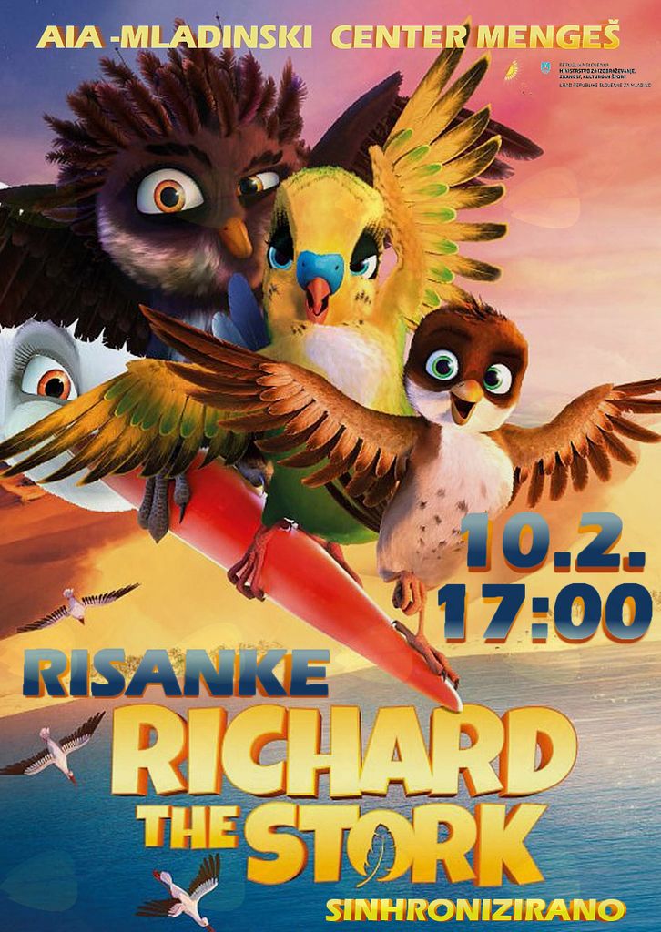 Vrabček Richard je osirotel že ob prihodu na svet, ko so ga pod svoje okrilje vzele prijazne štorklje. Ker je odraščal med njimi, je prepričan, da je tudi sam štorklja. Težava se pojavi, ko nastopi čas za selitev v toplo Afriko, saj vrabci niso ptice selivke. Njegova družina ga zato s težkim srcem pustiti samega v domačem gozdu. Vendar pa Richard želi svetu dokazati, da je štorklja, zato zbere pogum in se sam odpravi proti jugu. Na zahtevni poti mu na pomoč priskočita ekscentrična sova Olga, ki veselo čeblja s svojim namišljenim prijateljem, ter Kiki, samovšečna papiga, ki nenehno prepeva disko uspešnice.