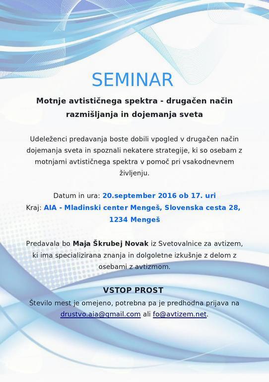 Število mest je omejeno, potrebna pa je predhodna prijava na drustvo.aia@gmail.com ali info@avtizem.net