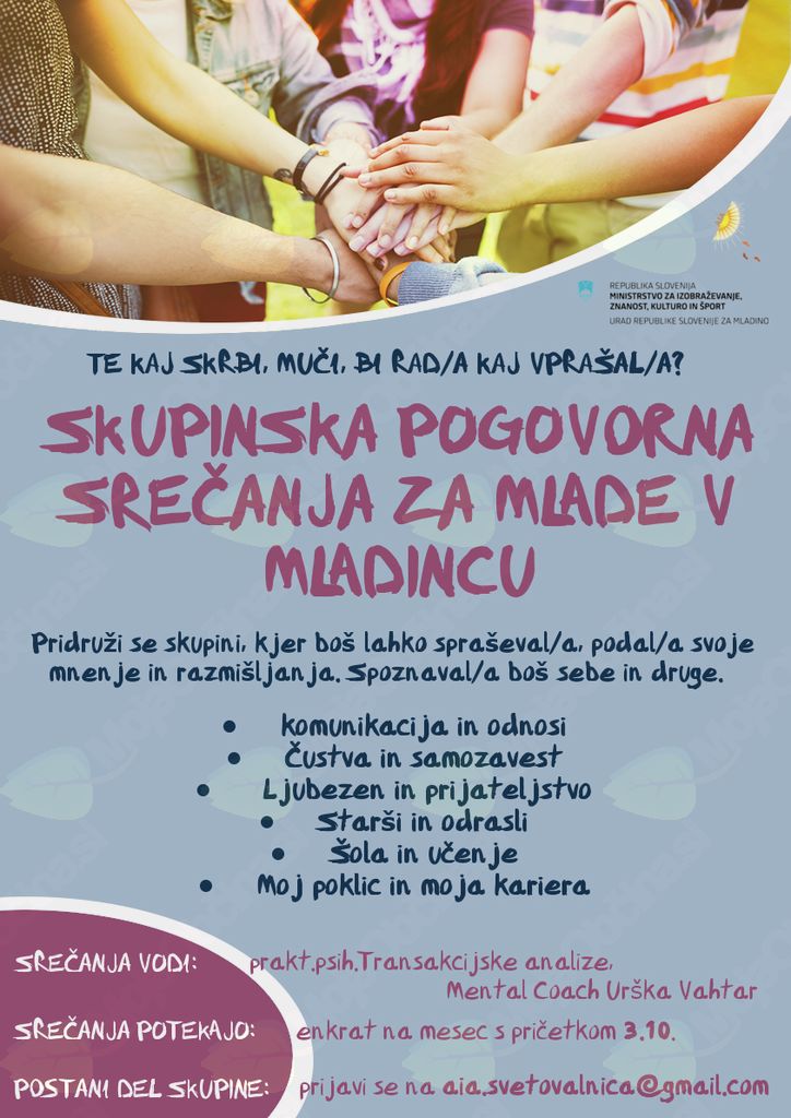 NOVO! SKUPINSKA POGOVORNA SREČANJA ZA MLADE V MLADINCU