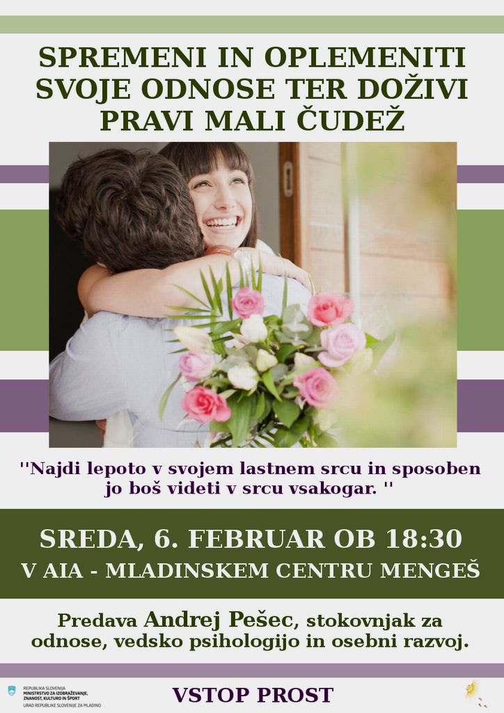 Če ti je tega dovolj, in si pripravljen(a) na pravi mali čudež, na to, da boš deležen/deležna čudovitih odnosov, miru in harmonije v odnosih z vsemi in vsem okrog tebe, dobrodošel/dobrodošla na predavanje :)
