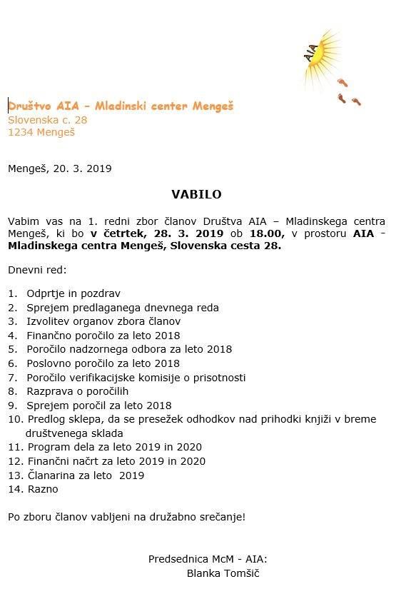 Organizator: DRUŠTVO AIA - MLADINSKI CENTER MENGEŠ