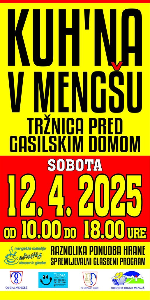 Priljubljeni kulinarični dogodek Kuhʼna v Mengšu znova prihaja v osrčje našega kraja. Spet bo zadišalo po uličnih dobrotah, za vzdušje pa bodo poskrbeli domači glasbeniki, ki bodo dogajanju dodali pravo mengeško noto.