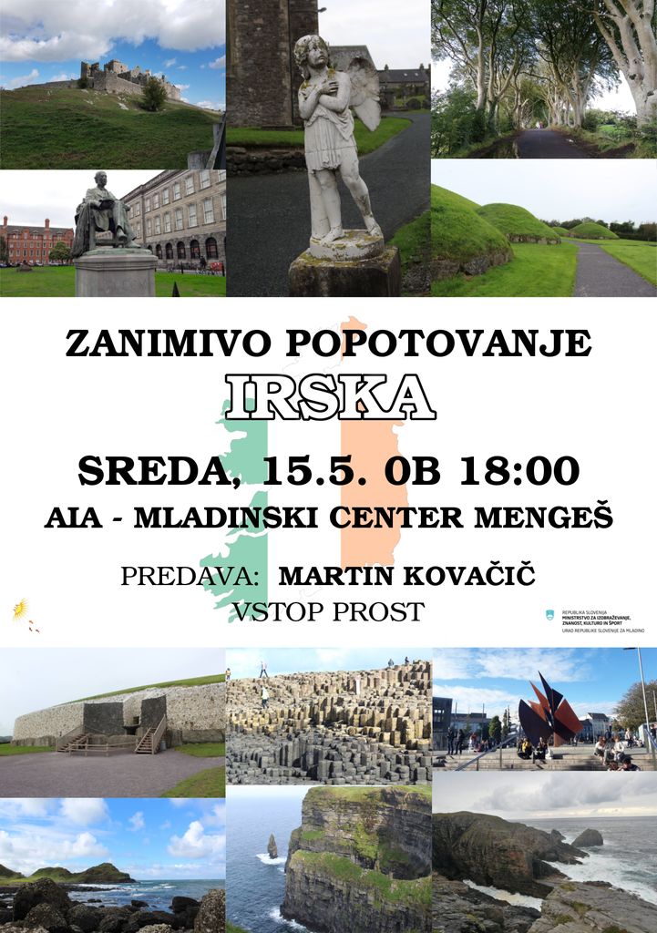 Irska je otok zahodno od Velike Britanije, ki se ga je prijelo ime zeleni otok in je poznan kot dežela deteljic, mističnih škratov, Keltov, Vikingov, številnih pubov kjer dobrovoljni Irci ob dobri glasbi nazdravljajo z Guinnessom. Po statistiki sodeče, veseli in prijazni Irci, spijejo največ piva.