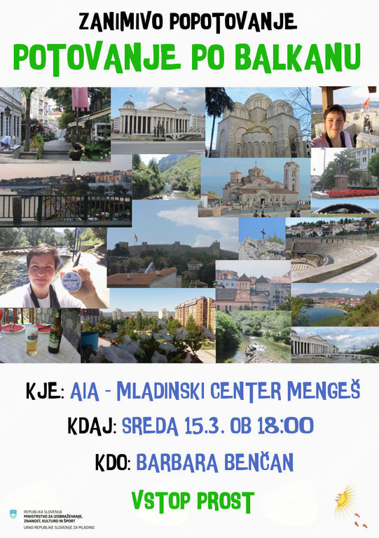 "Barbara Benčan bo predstavila njeno zadnje potovanje oziroma potepanje po Balkanu, ko je obiskala Srbijo in Makedonijo. Predvsem se bo osredotočila na posamezne prijetne in manj prijetne dogodke s potovanja, predstavila kako s čim manj denarja videti čim več v krajih, ki jih je obiskala. Ljudi okrog nje po navadi zanima tudi, kako je, če mlada punca potuje sama in kako zbere pogum za takšne "podvige".