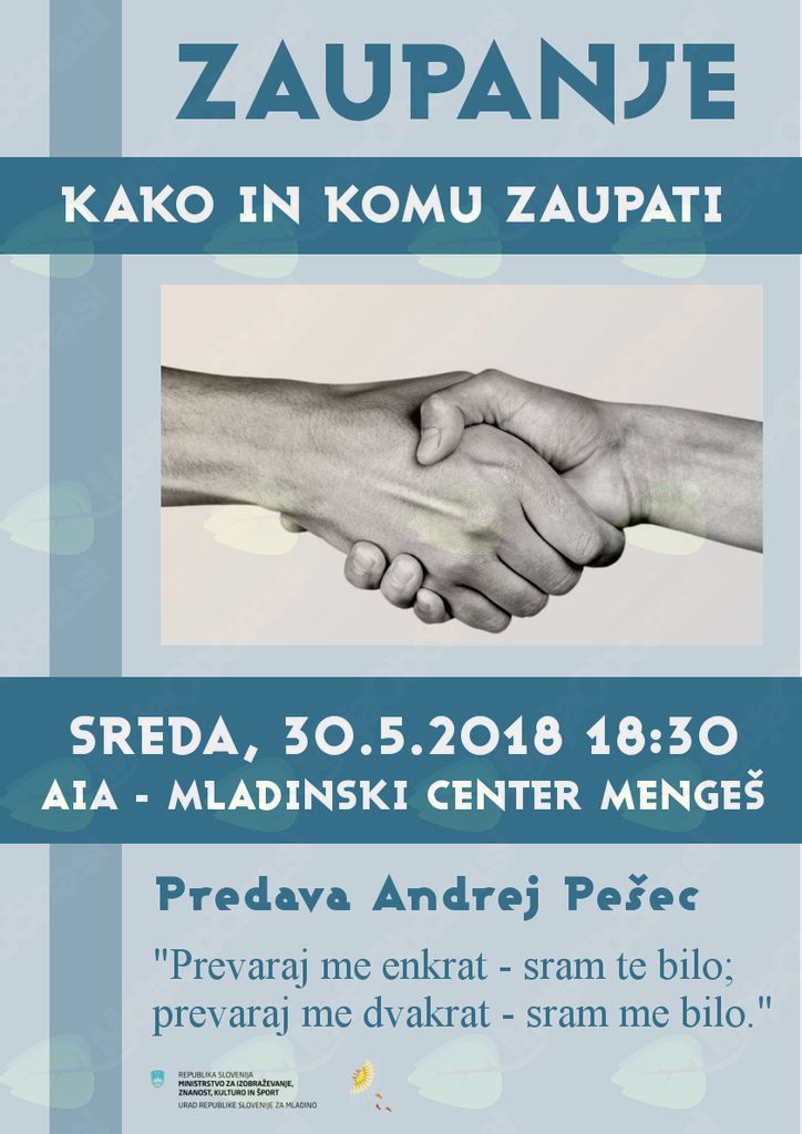Dobrodošli na predavanje na temo "Zaupanje - kako in komu zaupati" .