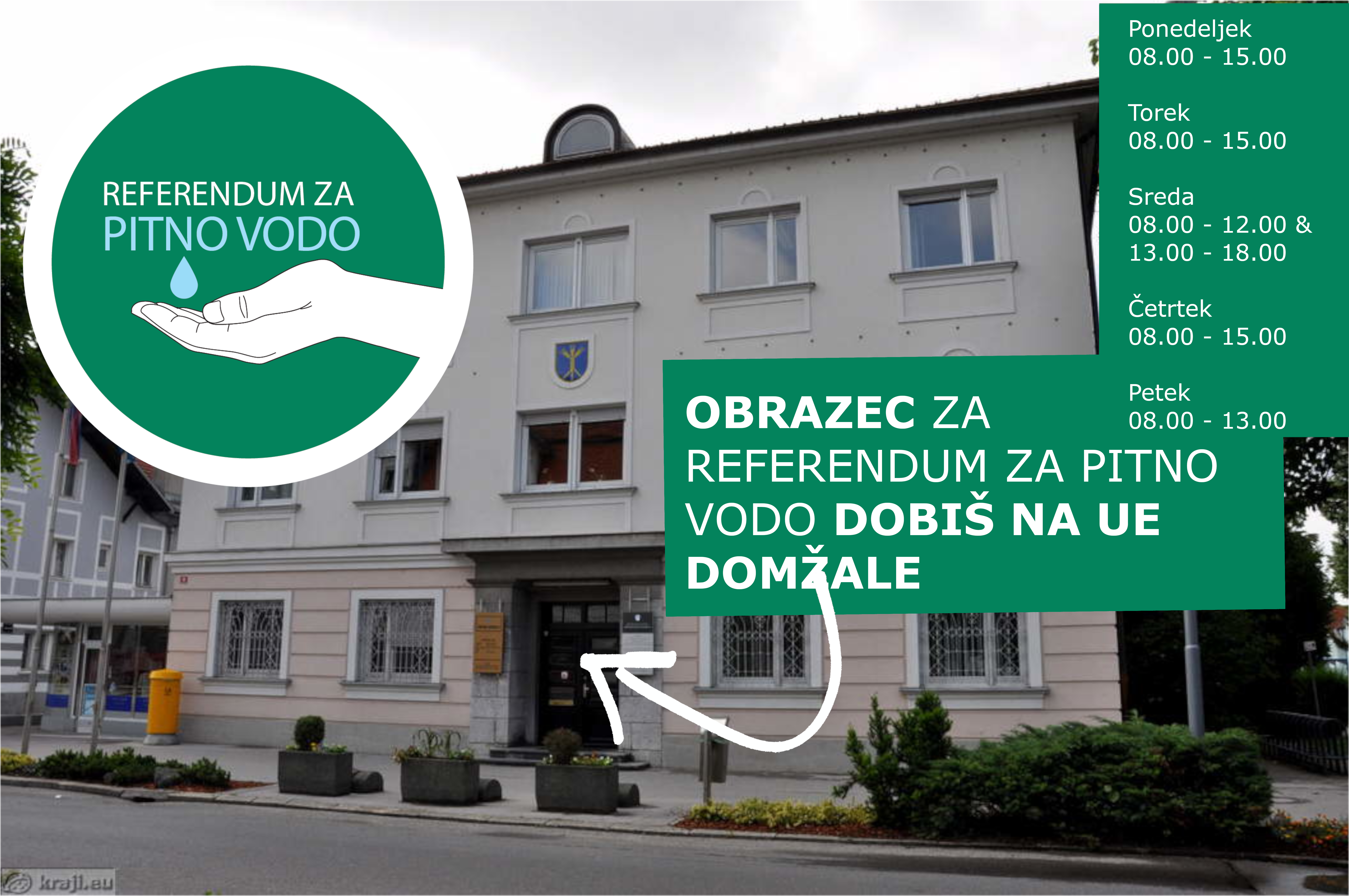 Več o inciativi si lahko preberete na: www.zapitnovodo.si, ter na Facebook dogodku Zbiranje podpisov za razpis referenduma ZA PITNO VODO: Upravna enota Domžale.