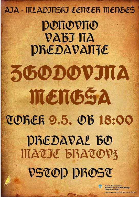 ter čudovitega mesta Mengeš, se nam pridružite na predavanju Matica Bratovža :)
