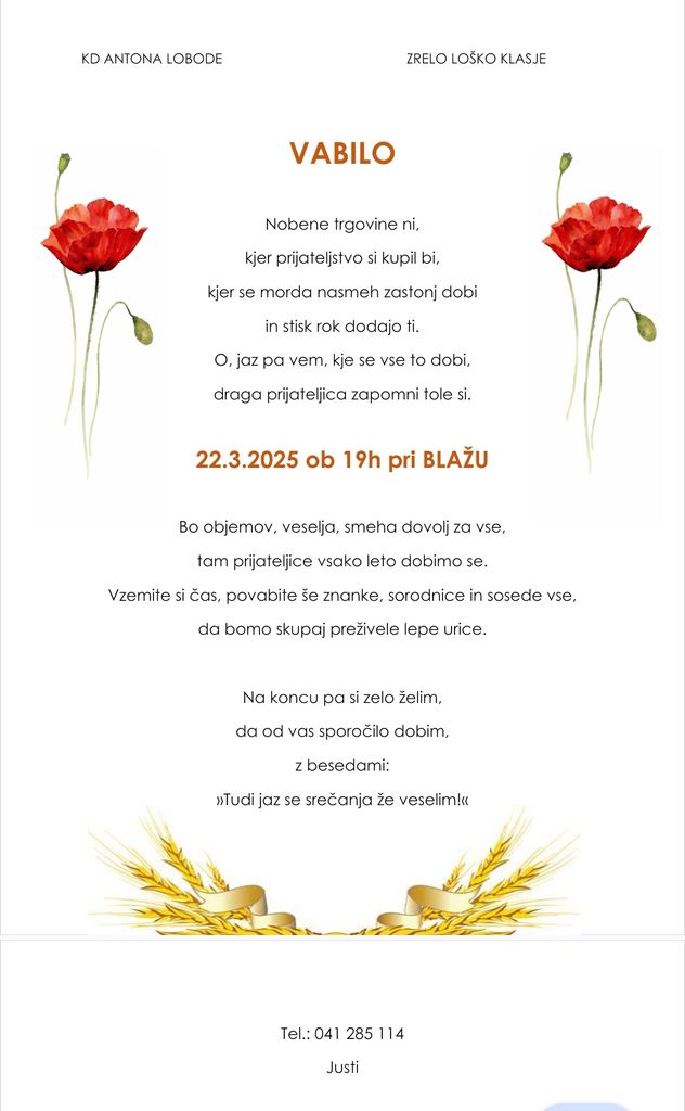 Organizator: KULTURNO DRUŠTVO ANTONA LOBODE LOKA PRI MENGŠU
