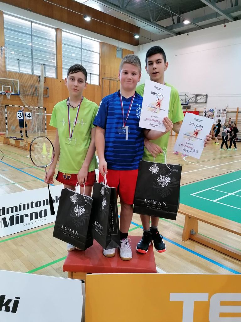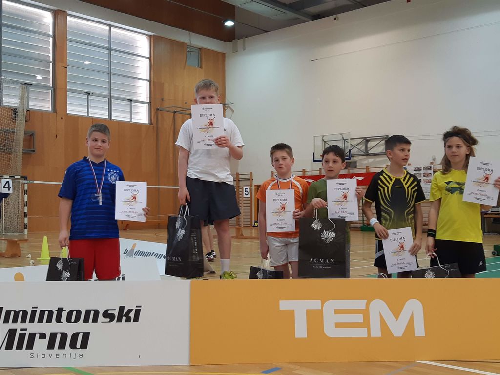4. Dan mirnskega badmintona se je začel z rekreativnim tekmovanjem mlajših, in sicer za U-9 (poligon), U-11, U-13 in U-15. V kategoriji U-11 smo imeli dva predstavnika, Nika Šinkovca in Filipa Tomazina, v U-13 pa sta tekmovala Nejc Šinkovec in Vid Tomazin. Zaradi velikega števila vseh udeleženih otrok so odigrali po en set do 15 točk. Filip je v kategoriji U-11 zasedel odlično drugo mesto, prav tako drugi je bil Vid v kategoriji U-13, Nejc pa je osvojil tretje mesto.